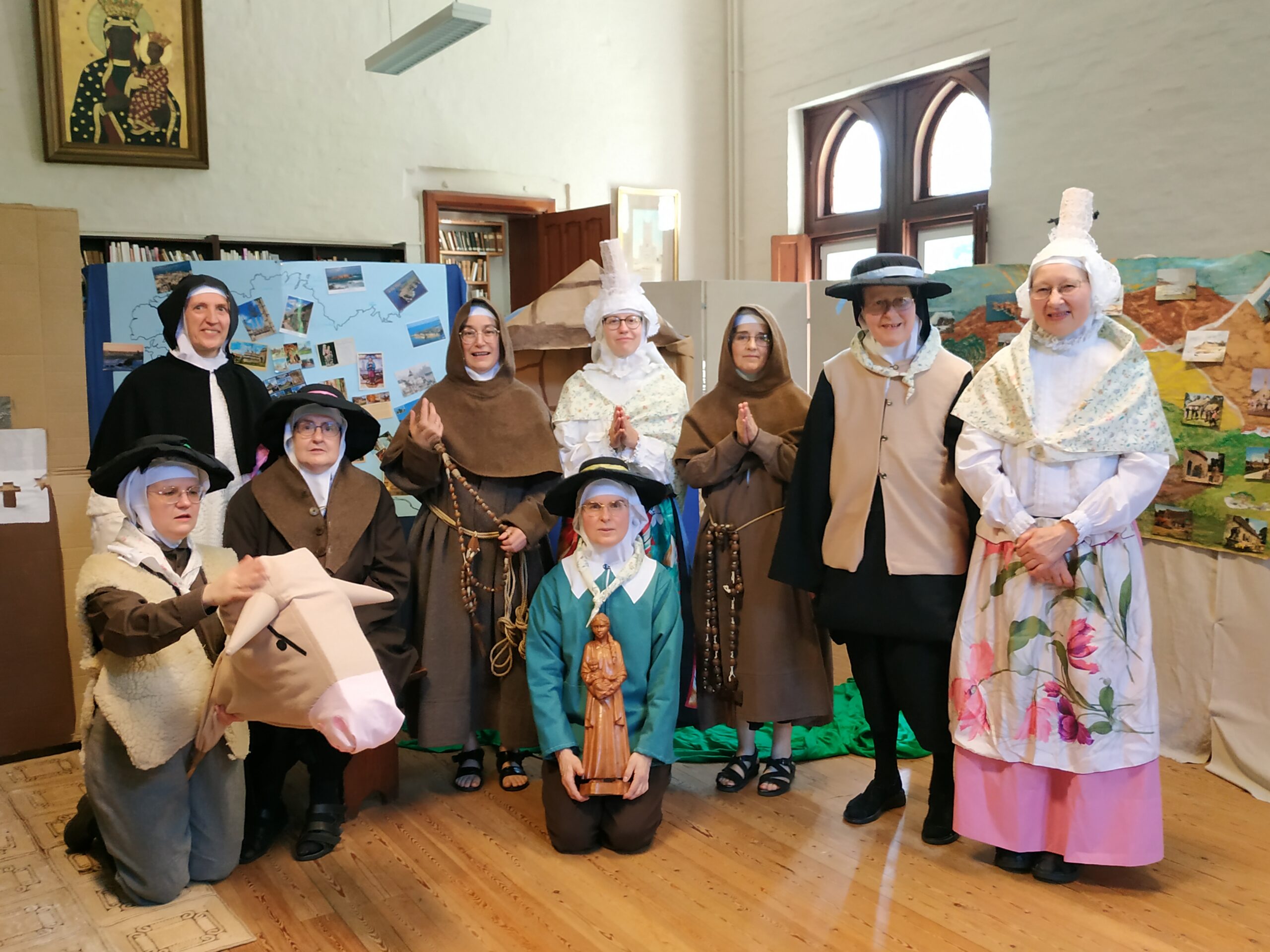 Un autre jubilé avait attiré notre attention depuis longtemps pour fêter notre Mère Abbesse Anne-Laetitia, le 26 juillet : celui de Sainte-Anne d’Auray, 4ème centenaire des apparitions de sainte Anne à Yvon Nicolazic. L’ambiance était bretonne pour le spectacle !